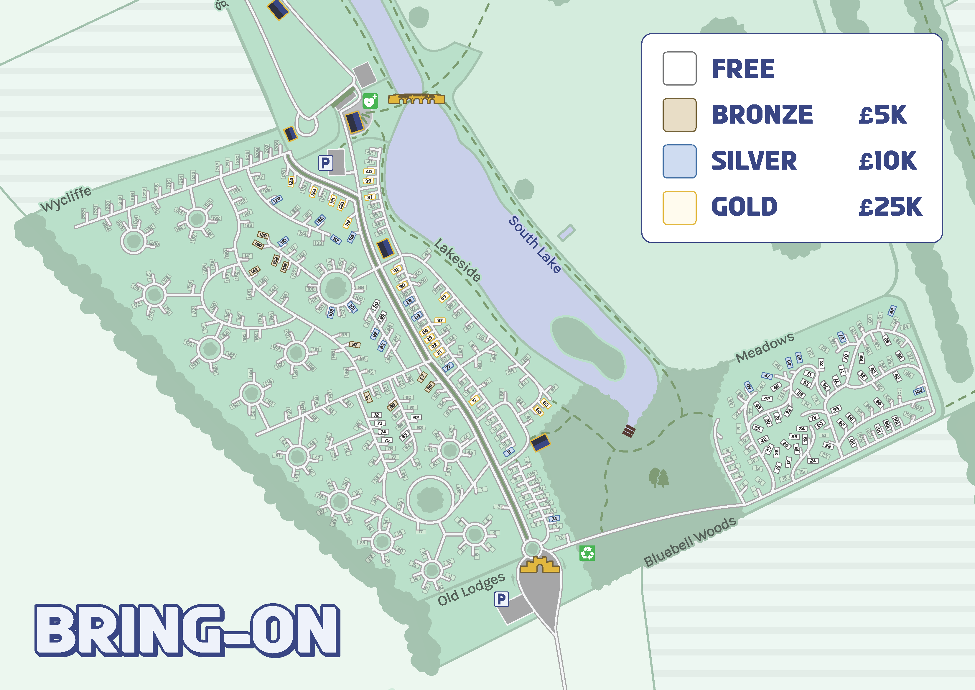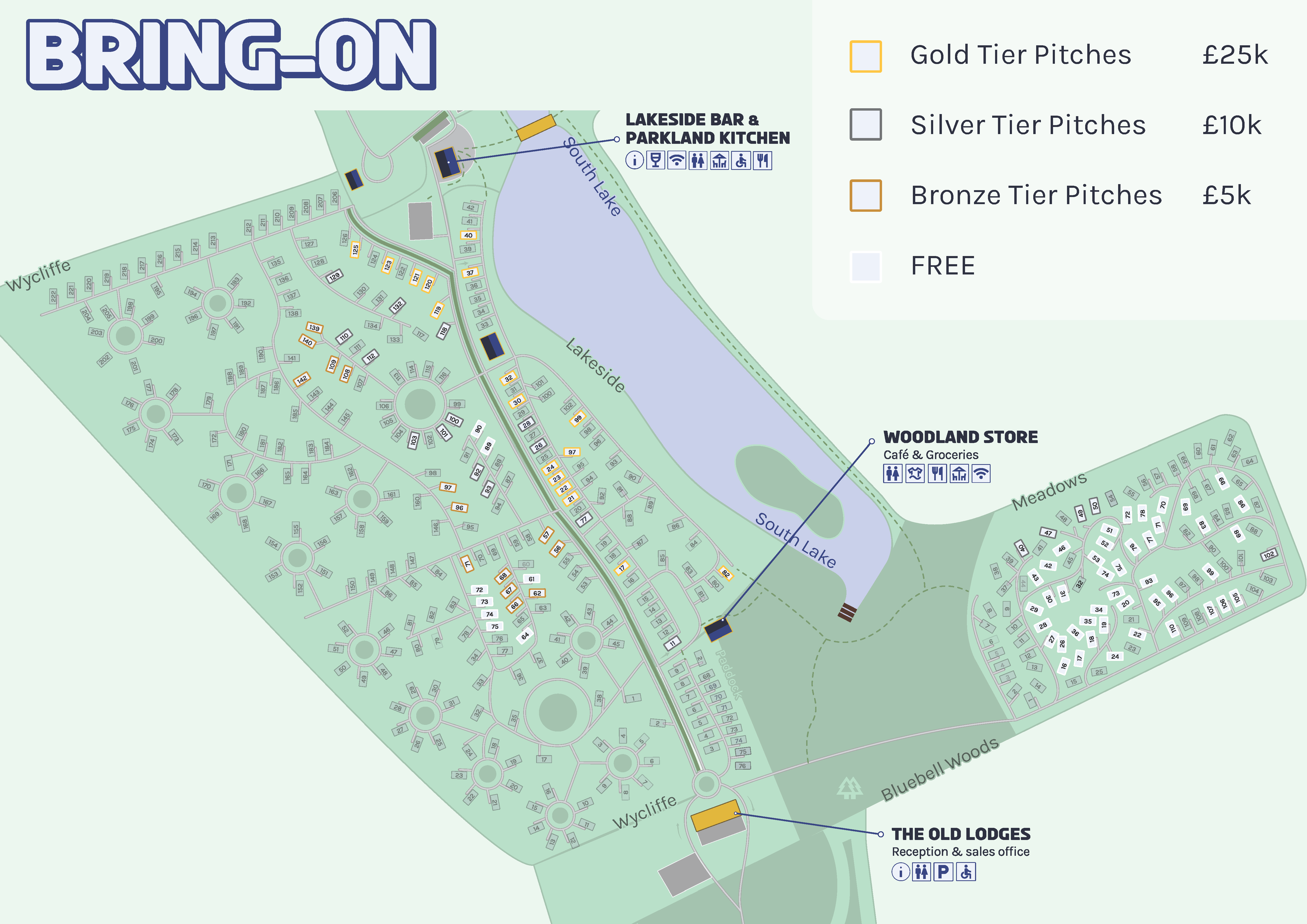 Fees range from £0 for a promotional pitch, up to £25,000 for premium pitches e.g. lake view pitches.
